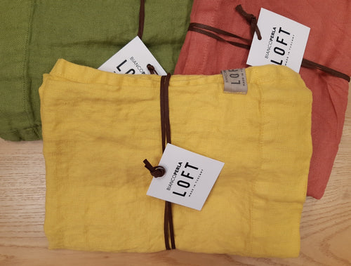 Coppia asciugamani puro lino "Giallo" Bianco Perla